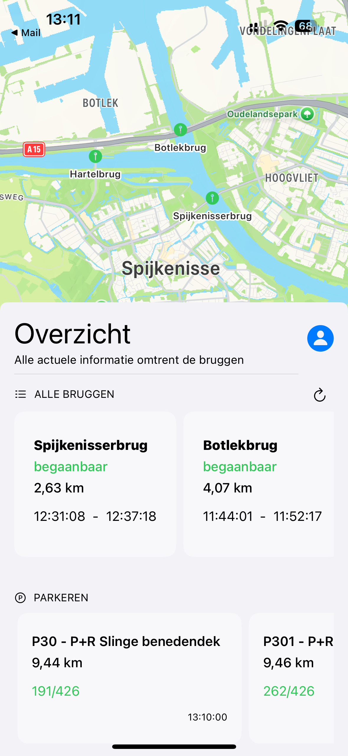 Snel de status van verschillende bruggen en parkeerplaatsen inzien